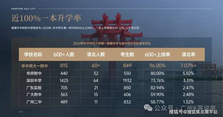一本率600分以上949人(含少年班、竞赛保送清北人数),600分率90%,华南师范大学附属中学600分率只有80%,广东实验中学82.94%。