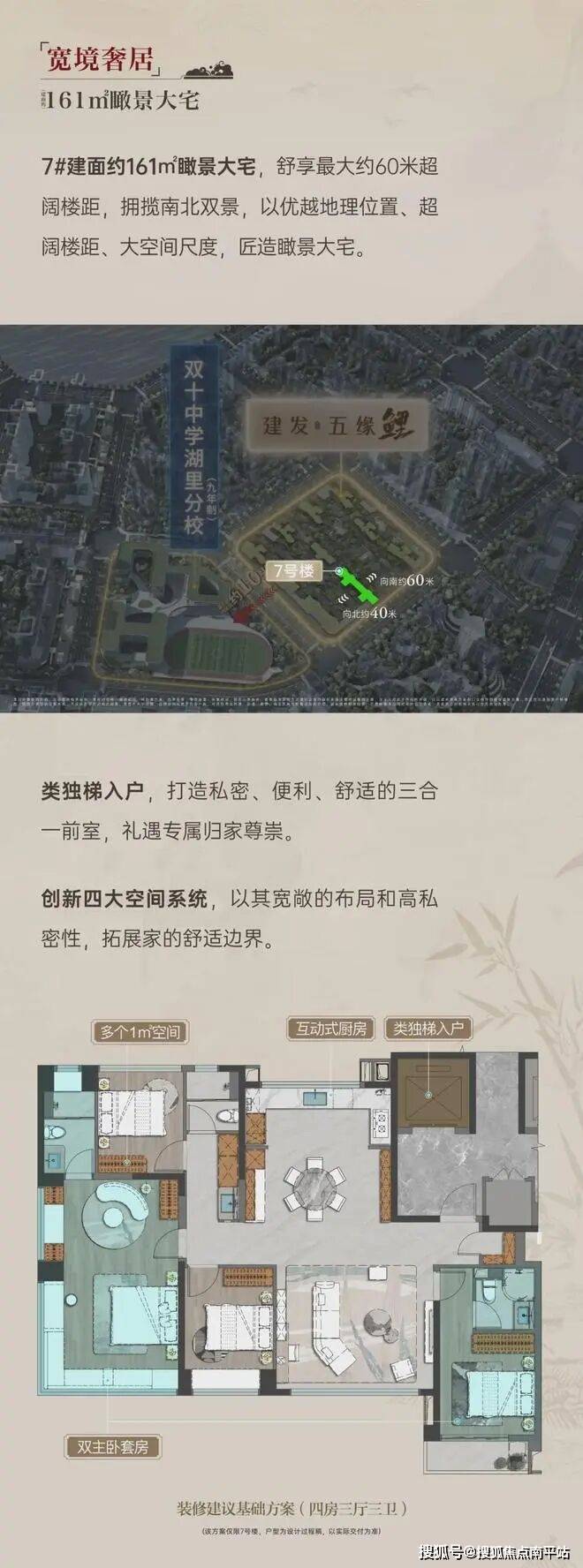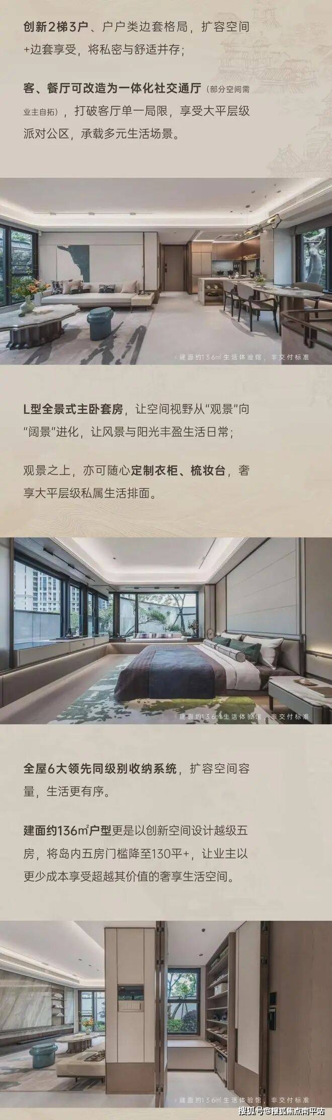 :建发房产在厦门首献风雅宋韵,以独特匠造手法展现宋时建筑 “清新儒雅,精致飘逸” 的神韵。项目有四大厦门首创人居理念,包括首创可定制交付户型,可根据客户需求进行户型定制(仅限 2024 年 6 月 30 日前认购房源);首创宁静住宅,采用园林 - 门 - 外墙 - 楼板四重隔音降噪技术;首次引入凯悦、弘爱医院等独有资源私定服务,打造康养等多维度管家式服务。