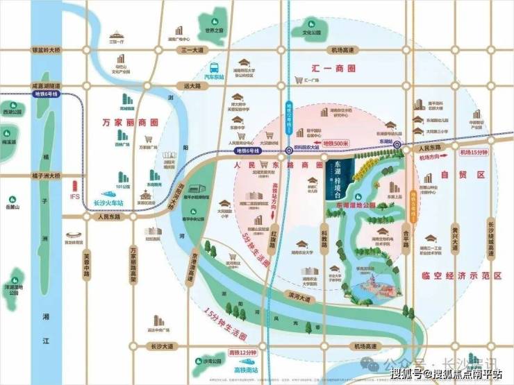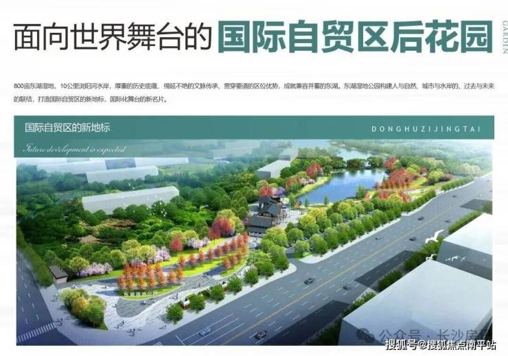 【环境配套】800亩东湖湿地公园、10公里浏阳河水岸、厚重的马楚文化历史、 东沙古井等环境,一方净土围绕,畅游自然。东湖公园:净用地面积约843亩,是芙蓉区“跨河东进”实现产城融合的重要生态连廊,未来比肩洋湖湿地公园,2023年底实现整体开园。