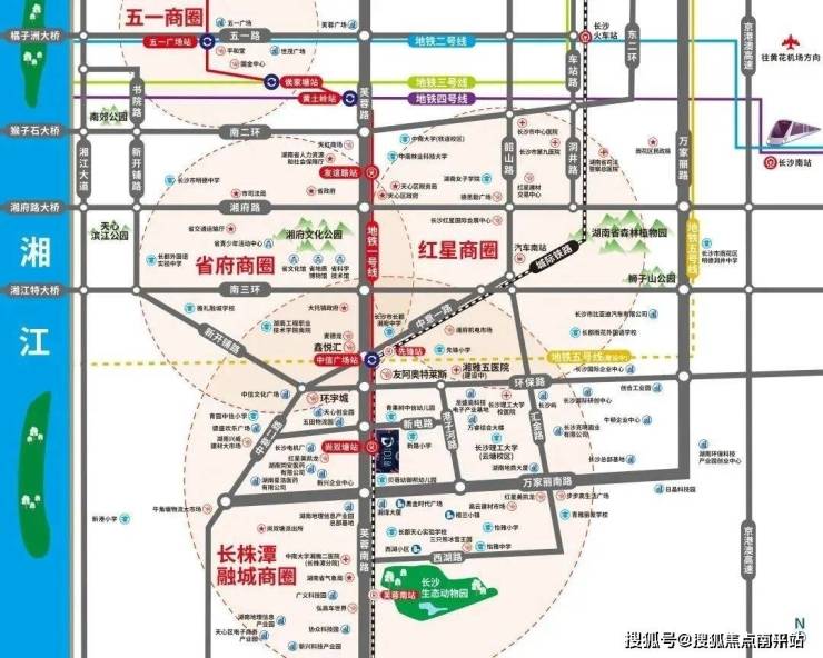红星商圈、五一商圈、省府商圈环绕。周边酒店林立,环宇城、中信广场、友阿奥莱、红星MALL等商业环伺,商业商务配套完备,繁华近享。长沙理工大学(云塘校区)、湘雅五医院(在建)等配套在旁,生活便利。