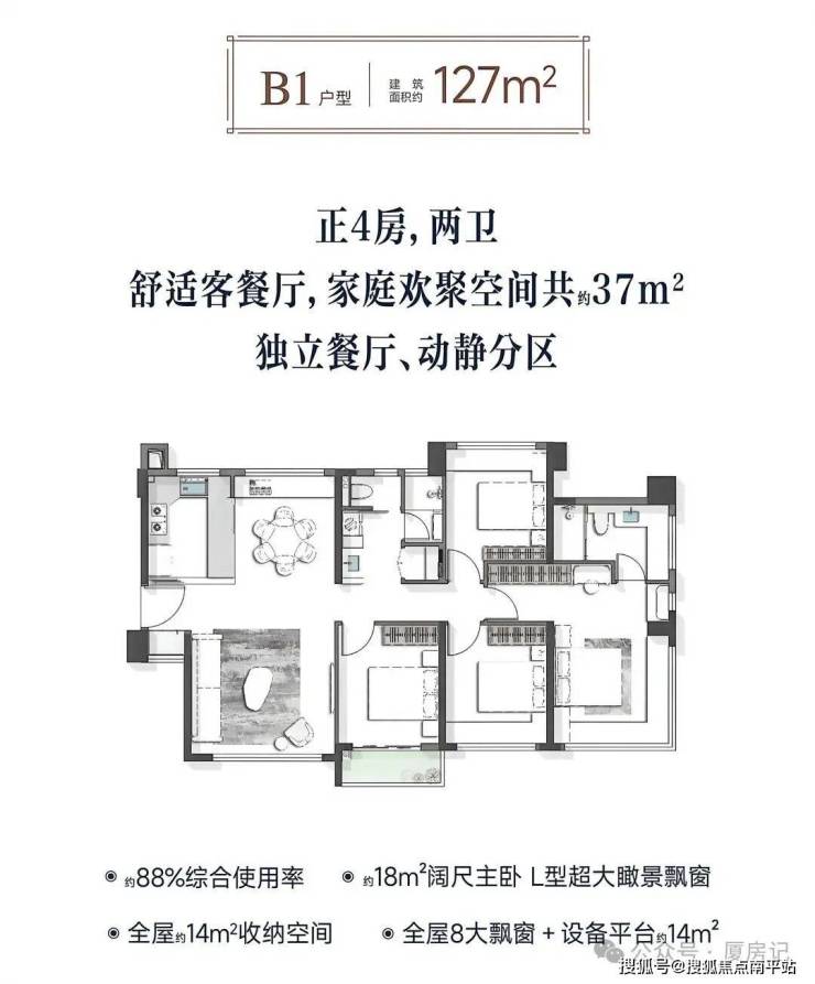 •为“高层+四代宅”组合,全系是100㎡以上纯改善型住宅,户型涵盖建面约104 - 179㎡的四房;