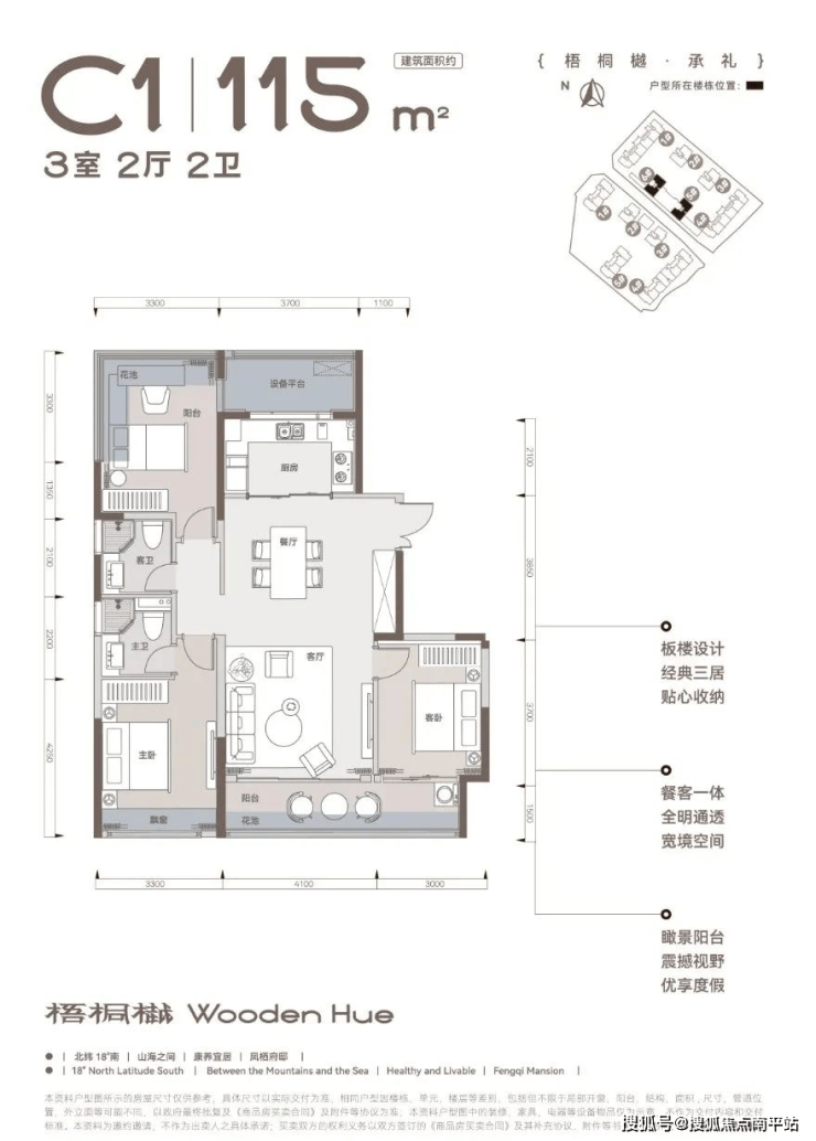 :板楼设计,经典三居布局合理。贴心收纳空间设计,让家居环境更加整洁有序。餐客一体,搭配瞰景阳台,视野震撼,宽境空间让业主感受到家的宽敞与舒适。