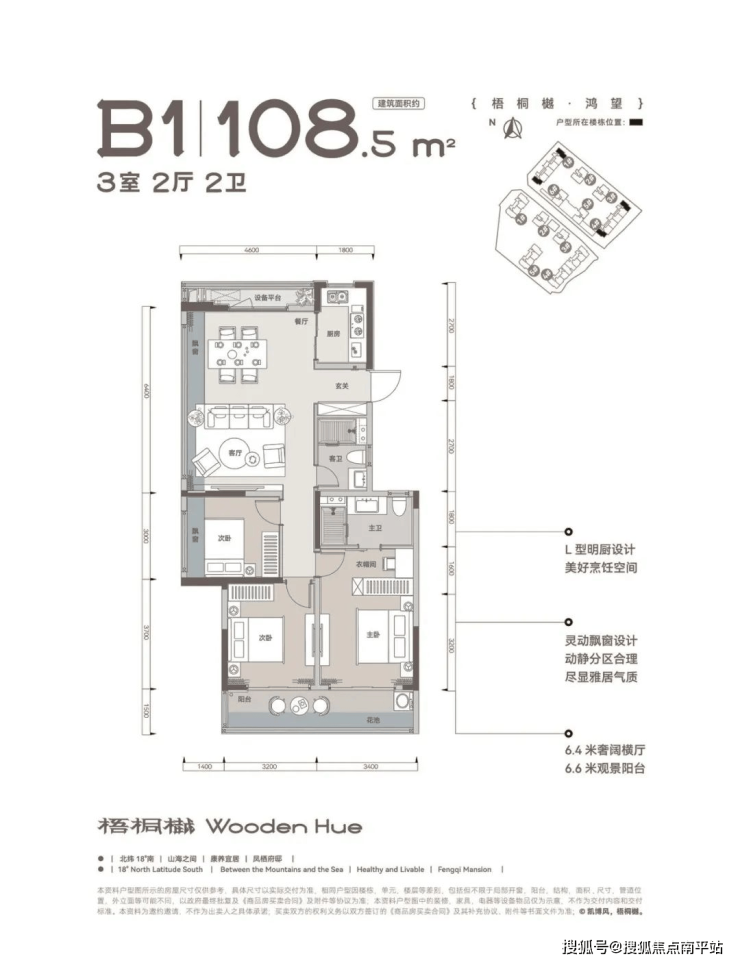 L 型明厨设计,为业主打造美好烹饪空间。动静分区合理,6.4 米奢阔横厅搭配 6.6 米观景阳台,让客厅空间更加开阔,视野极佳。灵动飘窗设计,为卧室增添了一份优雅气质,尽显雅居风范。