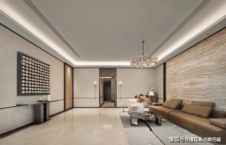 铝板或铝方通吊顶,地面高级通体砖铺,墙面奢石或高级墙砖,设有储藏柜、商务休息室、高级卫生间,步履之间渐次升腾归家仪式感。