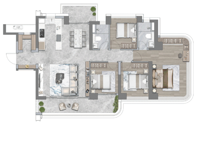 另一方面,在居住区域实现 “功能复合化” 布局(如多卧室套房设计、动静分区规划),让每一寸空间都服务于居住体验的升级,真正实现 “小面积、大格局” 的空间越级享受。