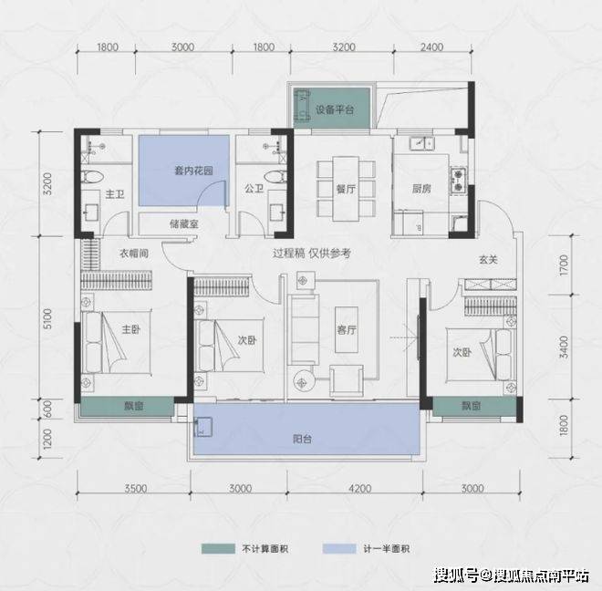 顺应“住宅新规”的升级产品,亮点是“超高得房率”,相比传统户型,新规户型得房率更高、增加可利用空间。
