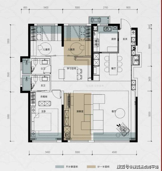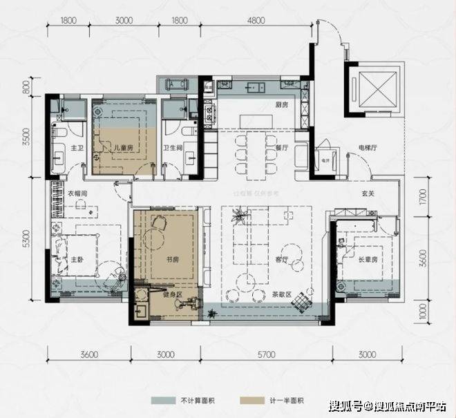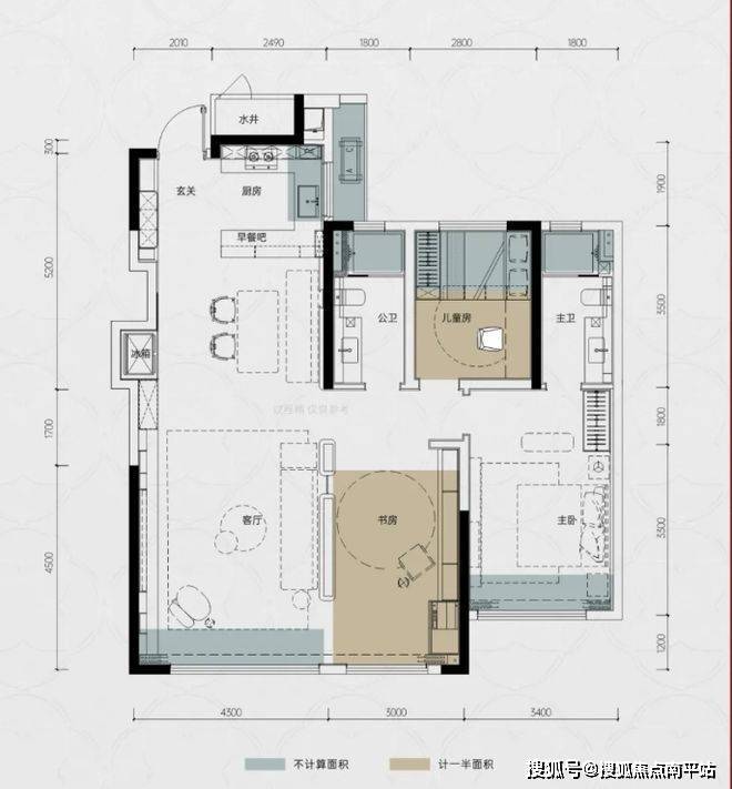 如建面约128m四室户型,创新S墙设计,4.5米客厅可拓展至7.5米横厅,学子“X“空间,为客户提供一个随心定制的空间。