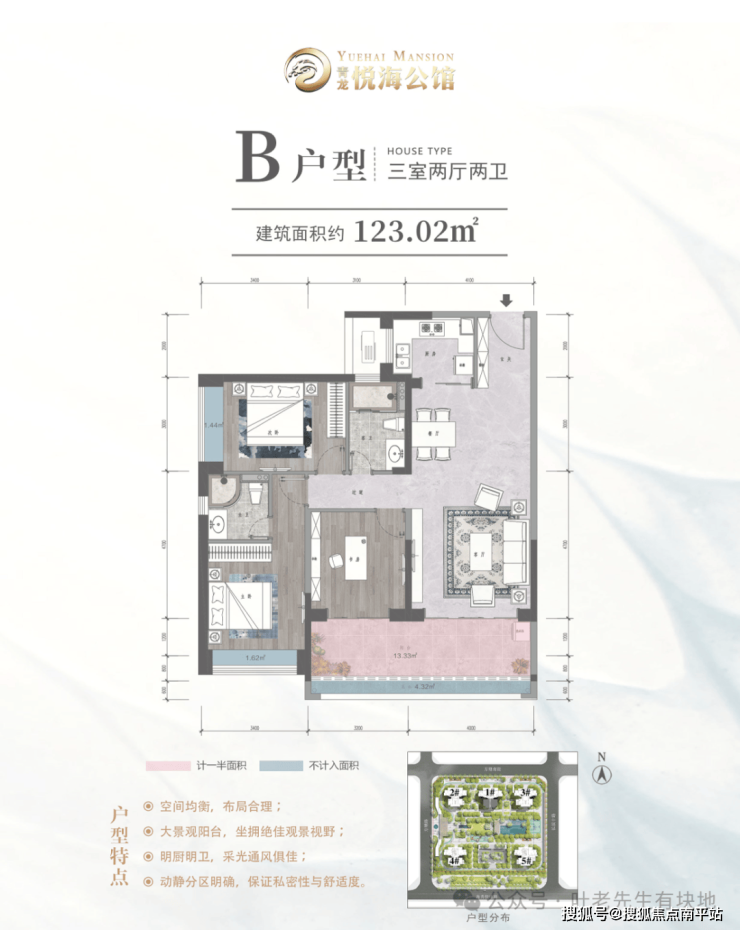 🌟 户型设计合理实用,舒适通透,户型均赠送卧室飘窗、阳台花池面积,赠送1/2景观大阳台面积。