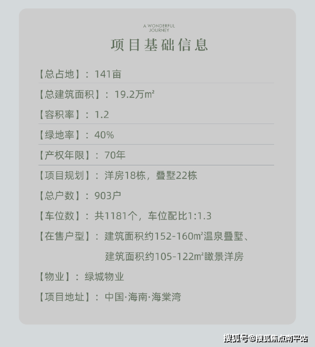 盛海棠总占地 141 亩,总建筑面积 19.2 万平方米 ,容积率仅 1.2,绿地率却高达 40%,产权 70 年。规划有 18 栋洋房和 22 栋叠墅,总共 903 户人家