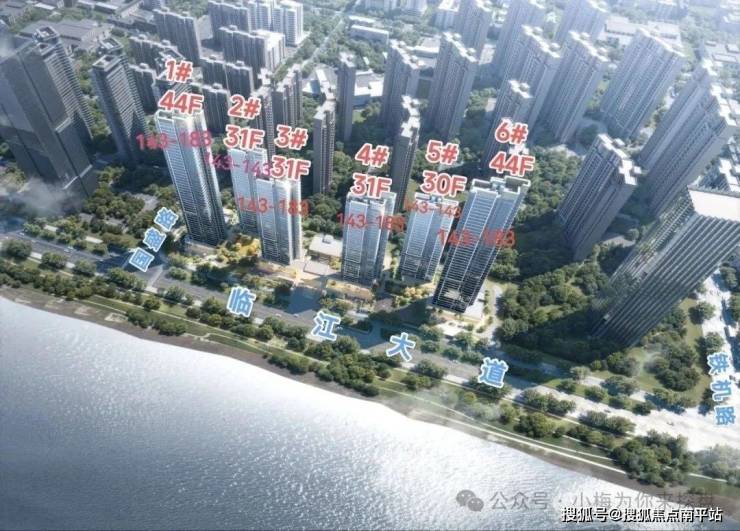 城该项目规划有6栋楼,临江一字型排开,全部一线临江,每栋住宅都有不错的观江面。栋栋正观江,前排无遮挡。其中2栋超高层、4栋高层,整体规划定位为改善。项目总建面约8.97万方,项目容积率2.49,总户数约402户,住宅机动车停车位约431个。该项目的人行主入口就在临江大道沿线,在3、4号楼中间,还规划了下沉庭院,而且每栋楼之间有风雨连廊连接,规划有绿化架空层和5个景观小组团组合而成。