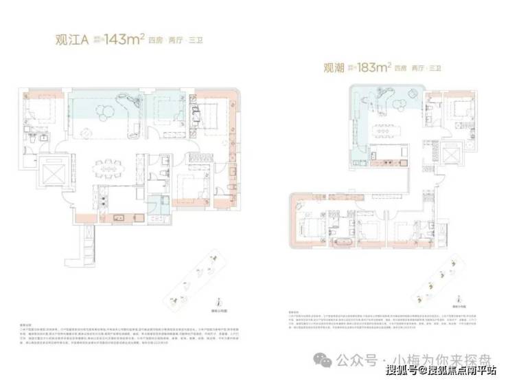 城建江南岸户型图已经更新,也是标准的准四代户型,目前公布有143、183㎡两个户型。算上赠送面积,得房率最高可达113%。而且户型是专门为了看江而优化的,主卧和客厅都有较好的看江视野,尤其是183㎡户型,客厅是270°无遮挡看江。