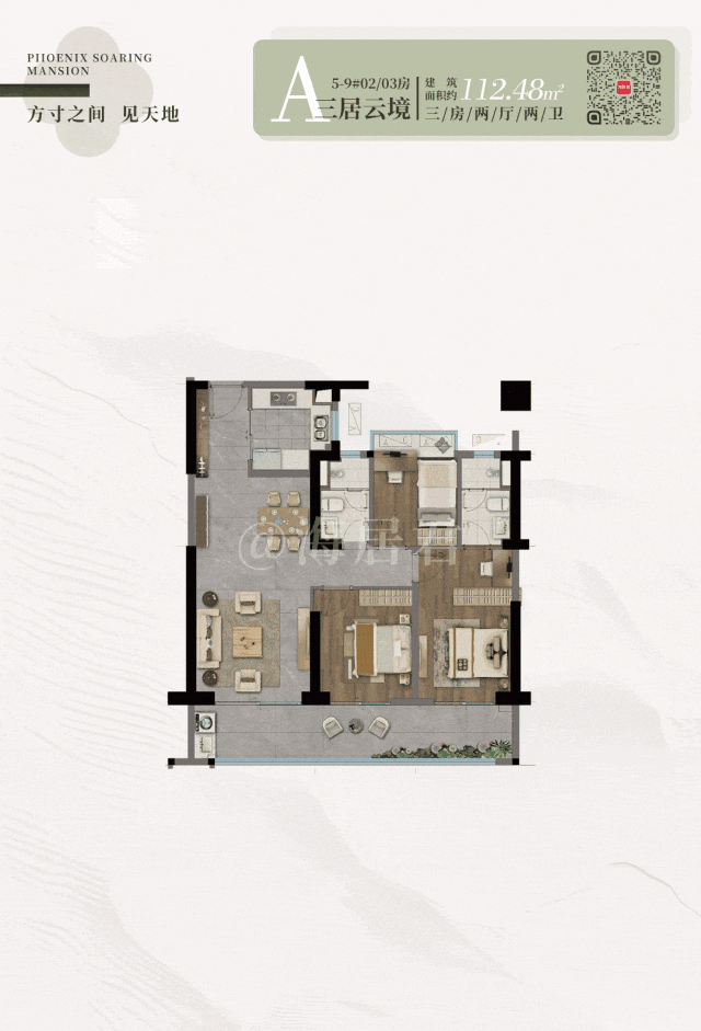 以建面约 112㎡三居室为例,如果你是刚需或家里人口少,这款产品值得重点关注。