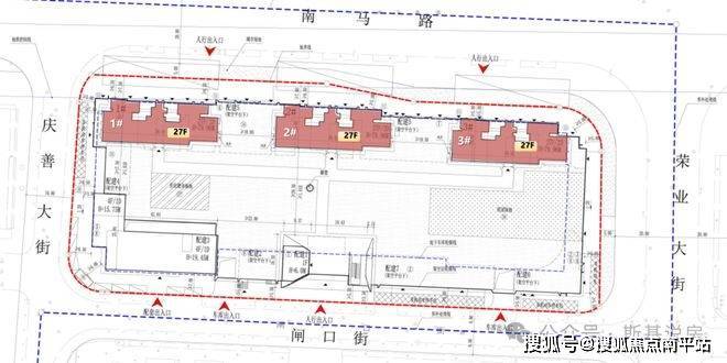 从公示的规划信息看,共有3栋住宅楼,27层到顶高层,三梯六户,架空层设计。