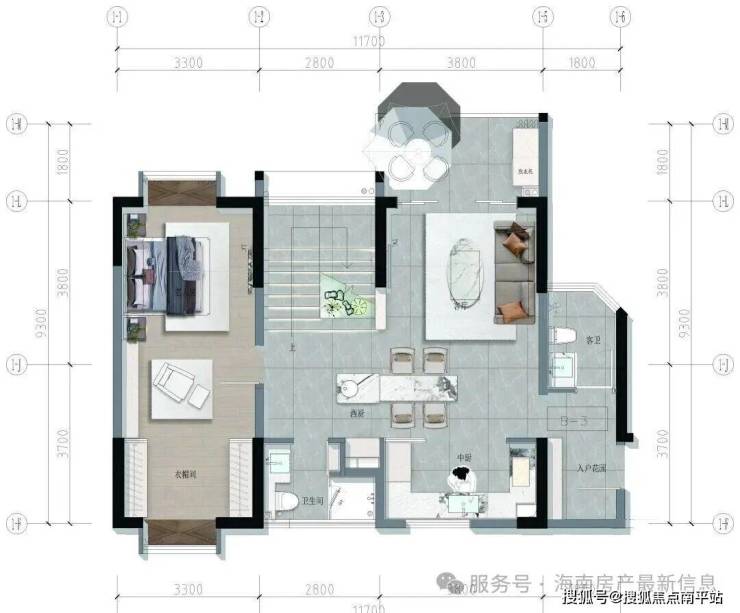 【B3 奢阔大平层 建面约89㎡ 三室两厅两卫】