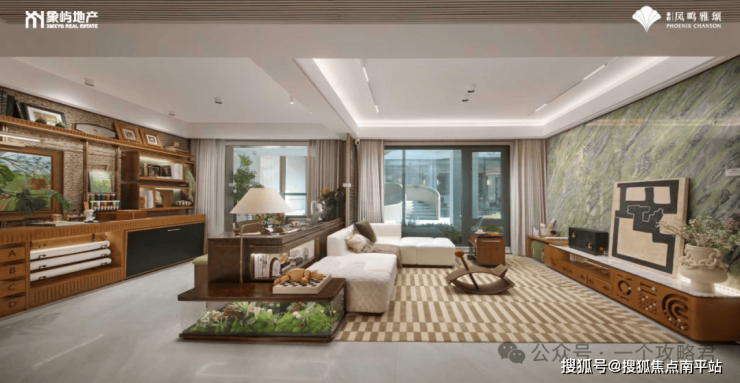 约67米长的“安缦风”雅奢门庭让人眼前一亮。流动金属线条勾勒“凤凰展翅”之姿,主入口黑金沙石铺就龙鳞水波纹,暗喻“望子成龙,望女成凤”,这大概就是“名门风范”的具象化表达。