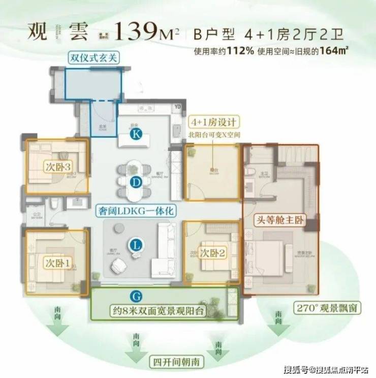 (2)139㎡户型:4+1房灵活设计,X空间拓展生活可能