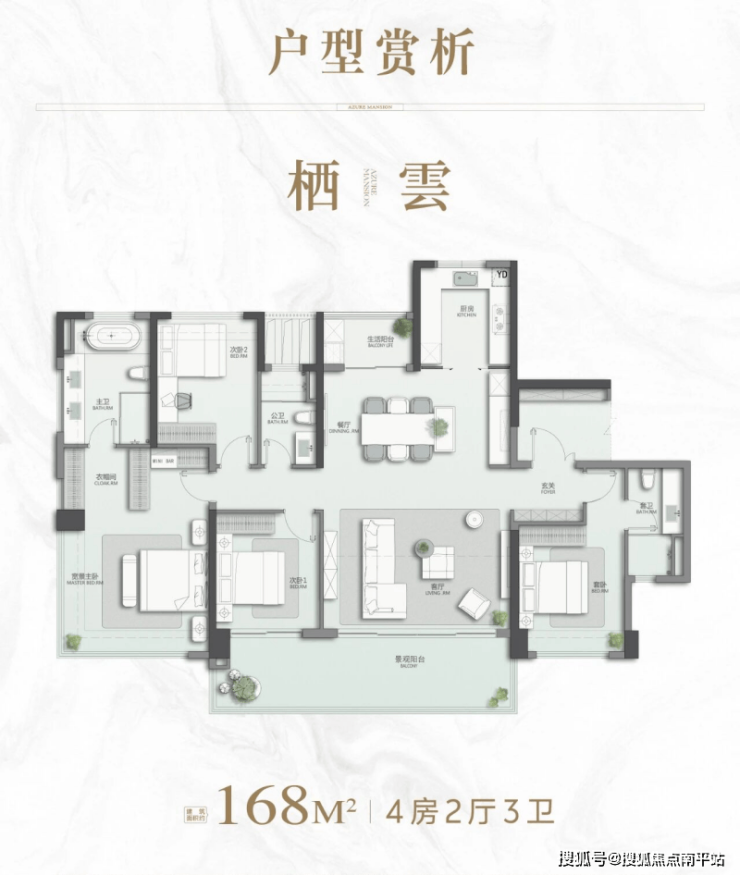 (3)168㎡户型:双独立套房,多代同堂的终极解决方案
