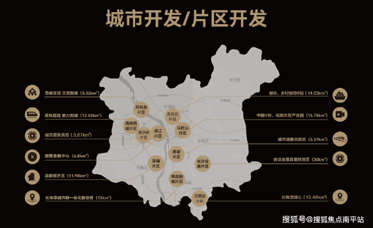 以“城市开发”为核,“城市建设、城市运营、产融投资”为极。聚焦“一核三极”总体业务布局主导长沙十一大片区开发。