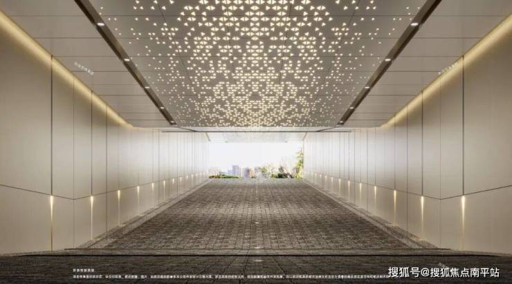 墙面搭配石材点缀,车库主入口劳斯莱斯经典星空顶,并且有迎宾灯带夹道欢迎,给业主崇高的归家仪式