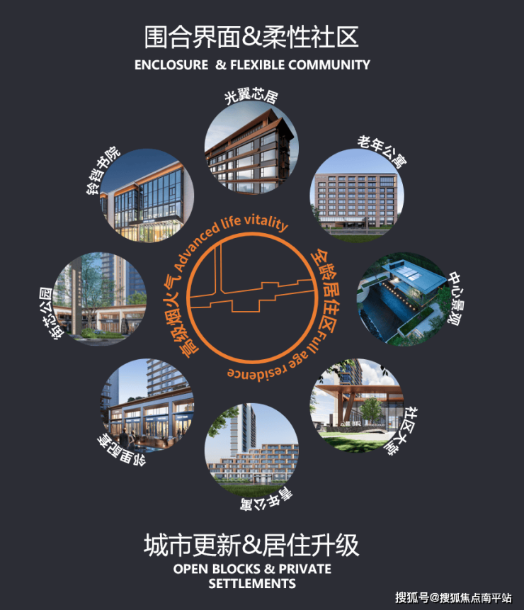 南北地块各自围合成两个生活核心,通过社区大堂连接,形成中央礼仪轴线全区域景观彼此呼应。同时以柔性功能及景观围合界面,有助于实现从区域到社区、从动态向静态的过渡。