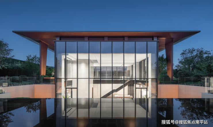 会所与下沉庭院,通过递进的空间高度变化、共享与通高玻璃幕墙让空间流动起来,以流动空间串联地上和地下空间,组织会所功能,带了连续内敛、层级丰富的空间体验。