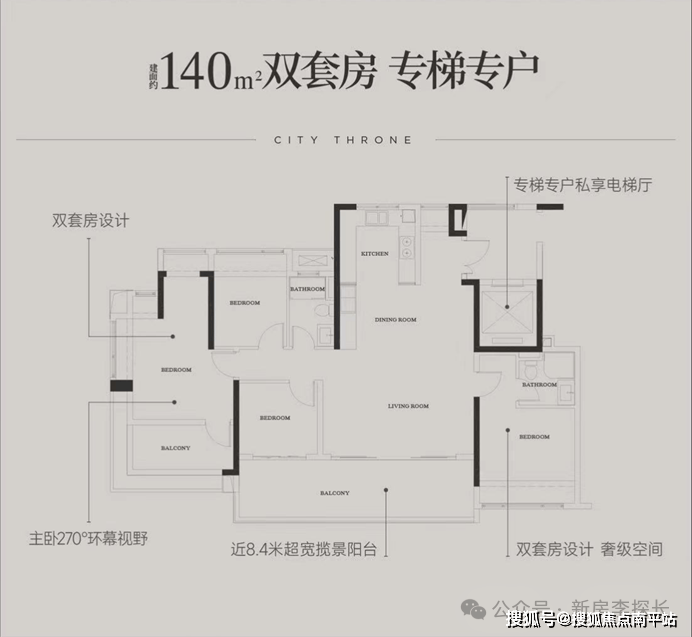 【建面约140㎡ 四室两厅三卫 双套房专梯专户】
