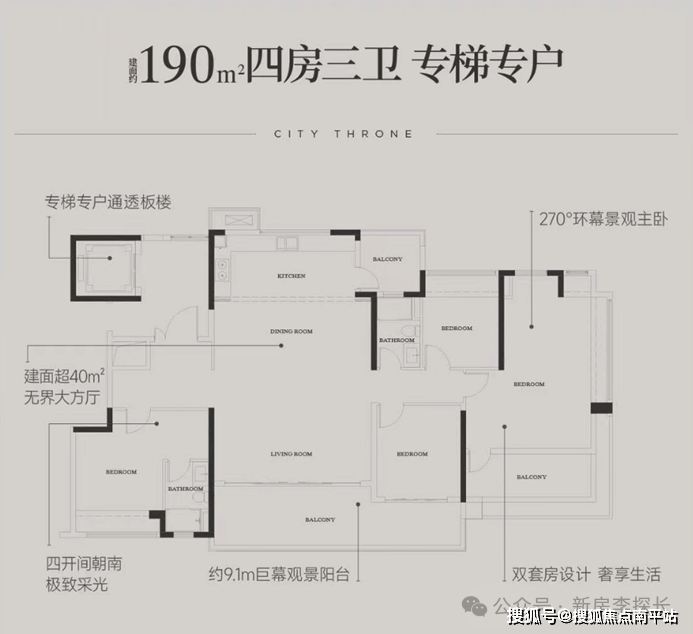 【建面约190㎡ 四室两厅三卫 专梯专户】