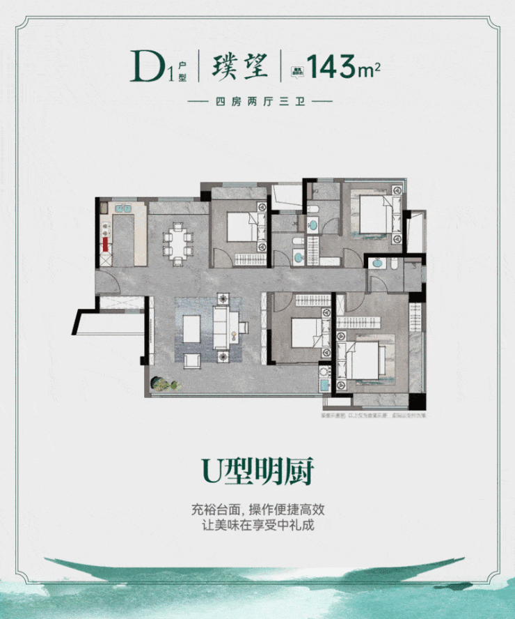 U型明厨,充裕操作台面,高效便捷,从容流畅