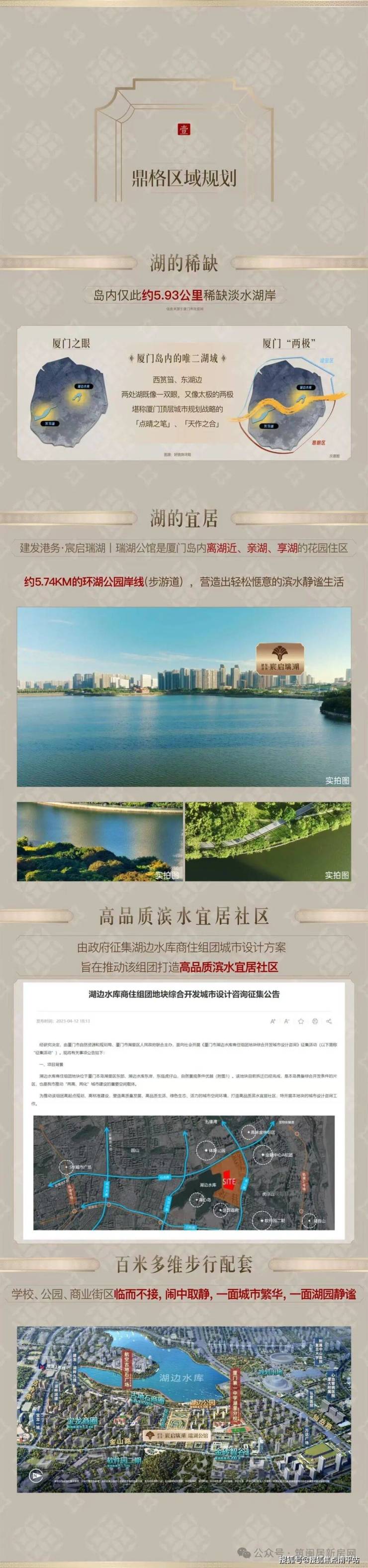 宸启瑞湖项目从规划上来看是涵盖了5个地块,地块均已全部收纳到建发囊中,因为有了五缘湾建发湾区的大板块、集美亭北和乐活岛等多板块大地块打造经验,此次的宸启瑞湖再担重任--湖边水库这个宜居板块的产品再跃