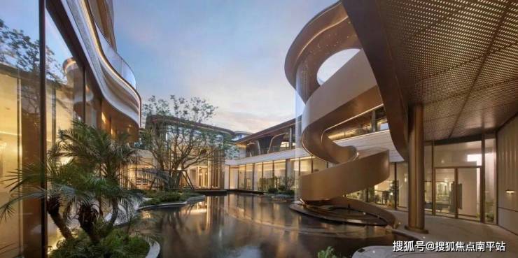 大面积LOW-E玻璃与石材相映,金属线条勾勒灵动曲线,顶部“天空之翼”舒展大气,搭配米白、浅蓝的自然色调,让建筑成为“会呼吸的艺术品”。立体山水楼群高低错落,空中光影庭院随日光流转,复刻“一日之内,光影四时”的诗意,让每一次归家都邂逅东方美学。