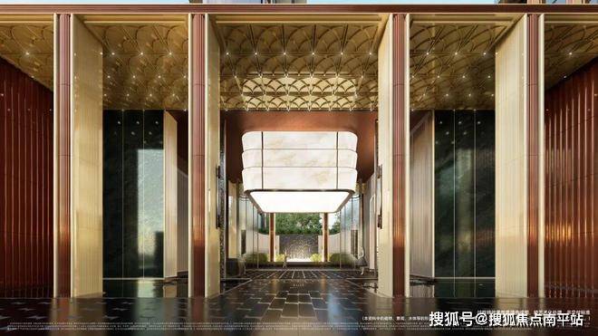 天樾云颂二期的建筑外立面,结合香槟色铝板与大面玻璃,构筑成“全面屏幕墙”。约8.3米高的入户大堂,将归家体验的奢华与尊崇感拉满。