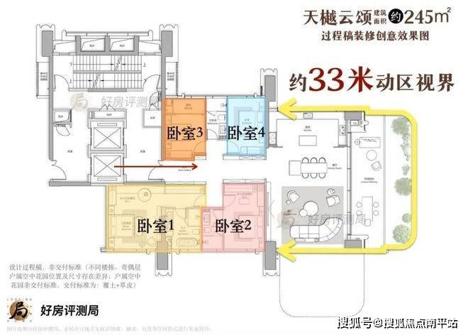 以245㎡户型为例,跨度约11米、进深5米的露台