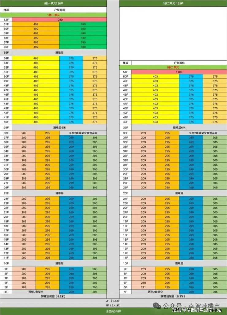 ——低区 5F起(150米以内)是约209-304㎡四房大户型;