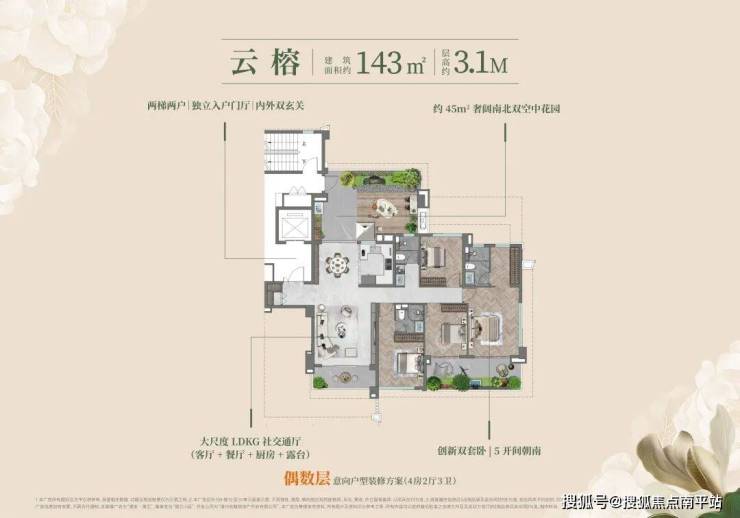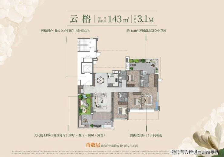户型亮点:户户皆端套、户户赠送空中花园,得房率高,部分户型得房率可达100% - 130%,如96㎡可做标准四房,170㎡实际使用面积可达220㎡左右。