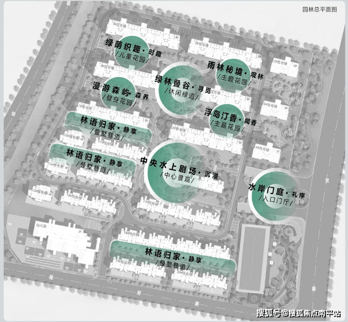 盛海棠以东方美学为魂,度假休闲为肌体在园林设计中融入岛屿、森林、海浪等自然元素规制两轴、三片区、多节点度假式园林