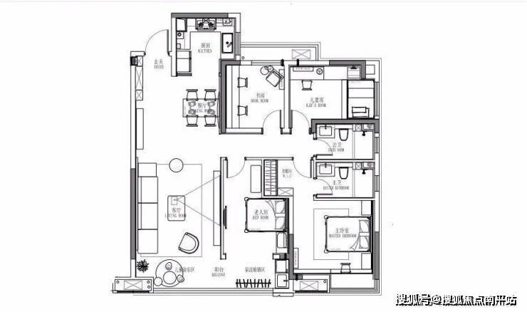 建筑面积约136㎡四房户型,采用餐客明厨阳台LDKG一体化设计,配备超大横厅,主卧套房设计,配备超大卫浴和衣帽间,带来堪比大平层的舒适度。
