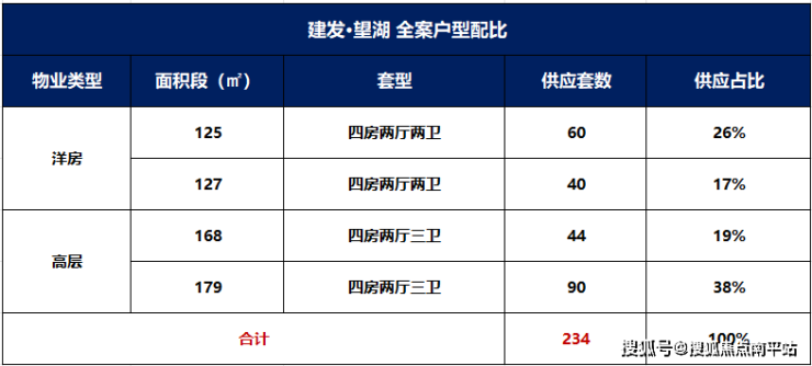 建发望湖项目共规划6栋住宅楼,其中3栋高层、3栋洋房,高层住宅134套,洋房住宅100套,合计234套。