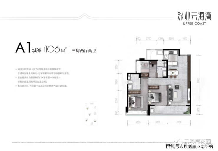 A1户型——建面约106㎡3房2厅2卫来电咨询☎️☎️400-159-8559转接7777【☎营销部电话已认证】
