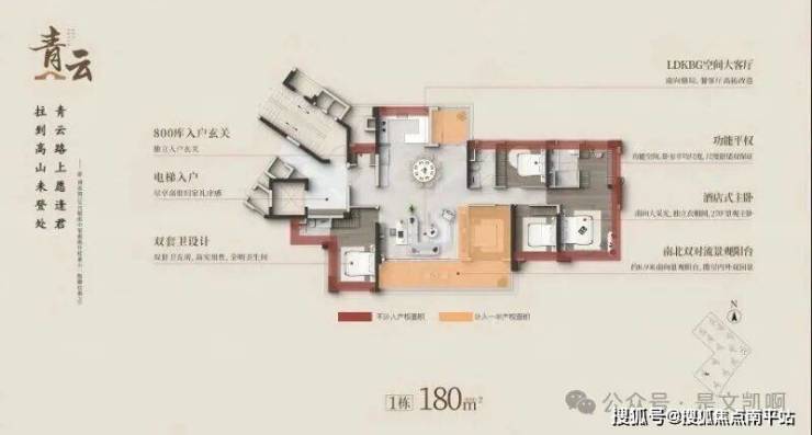 180㎡五房:专梯专户+9米跑道阳台,5.9米大开间客厅,双主套设计,纯改善大平层体验。