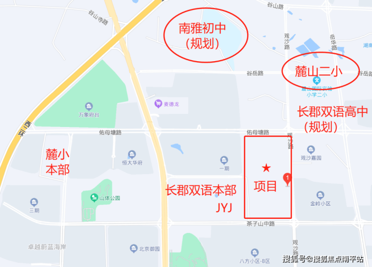 片区属于教城融合示范片,是长沙教育高地。项目预计配套入读(长沙市实验小学和麓山国际二小,初中南雅观沙岭)