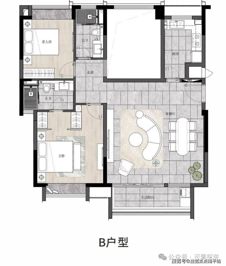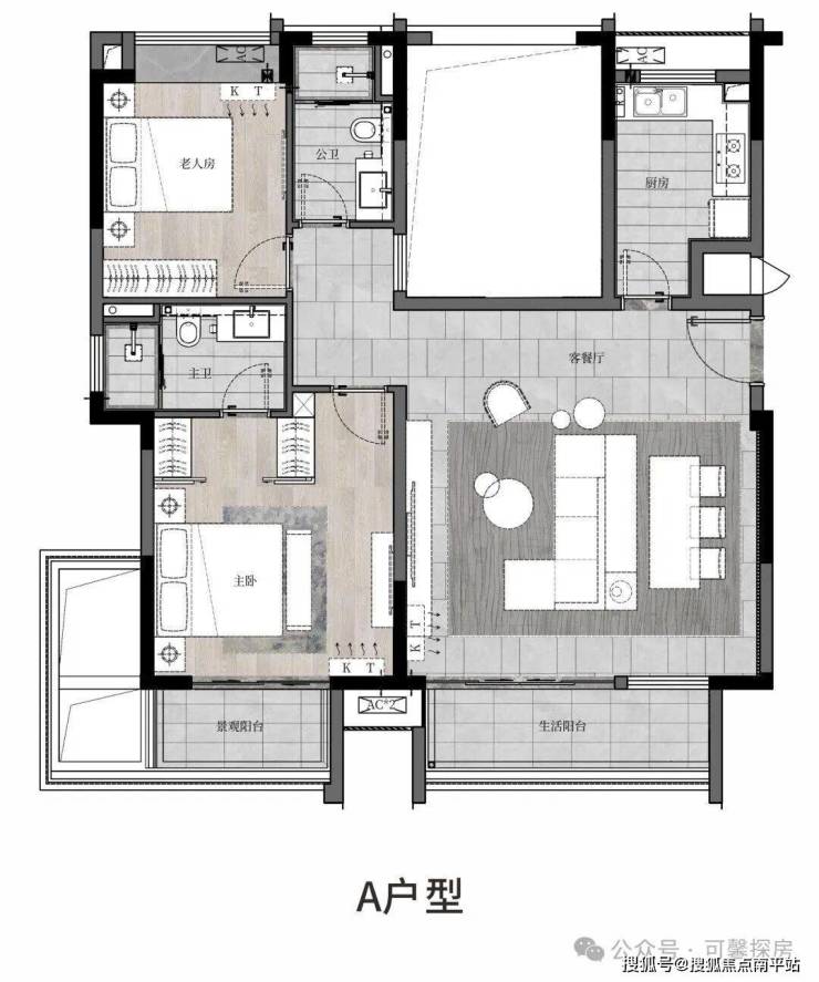 户型特点:一梯二户、板式设计、南北通透、户型方正、横厅设计、阔大飘窗、宽大景观阳台;