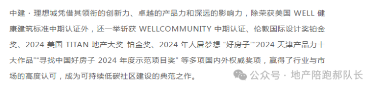 理想城严格按照WELL健康住宅社区标准进行设计,秉持着打造持续焕发生命力的建筑与社区,共享更高标准更高品质健康生活的设计思路,通过80多项标准考核,最终获得了IWBI* 颁发的WELL COMMUNITY中期认证。