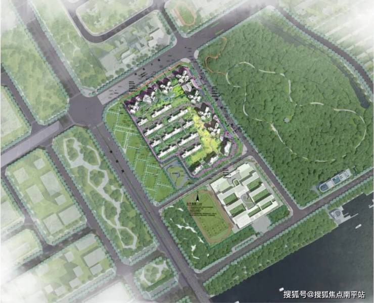 最后,场地内部通过“一湾引水“,将基地内的不同楼栋,既串联又分割,引活景观的同时,也将基地成为真正的城市级大花园。