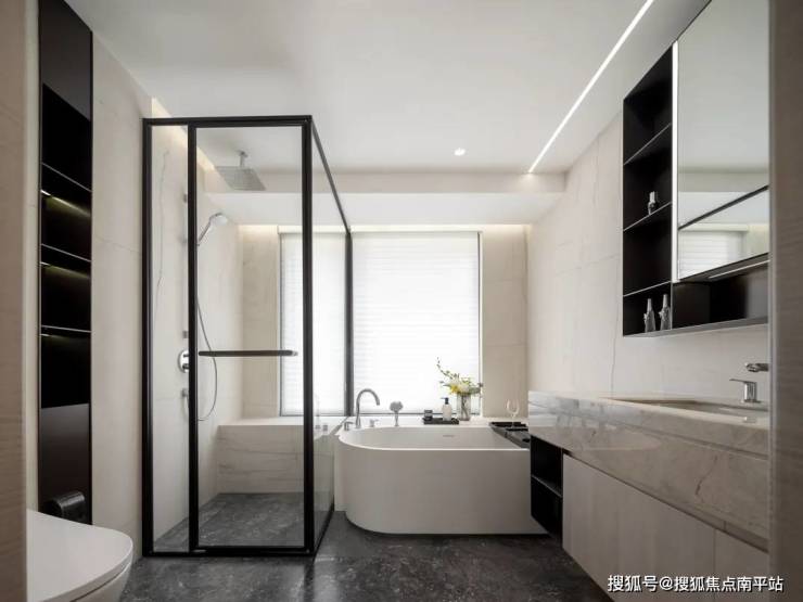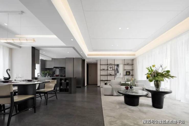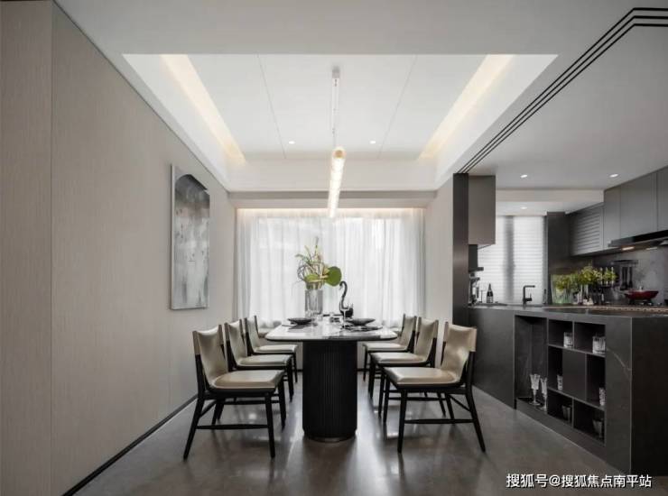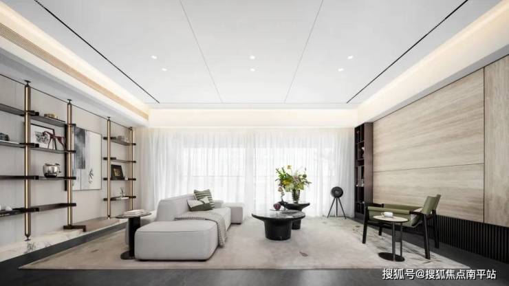 在材料上,选用柔和、低饱和度的浅灰色系形成平和基调;通过石材及金属饰面的应用,整体的现代感和精致度得到呈现,展现出一种含蓄的可辨识度。