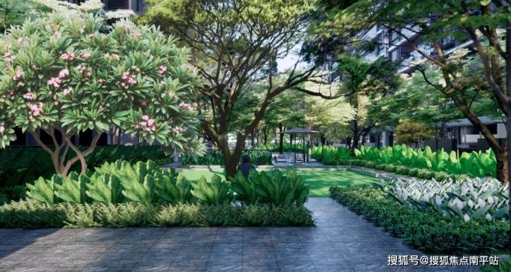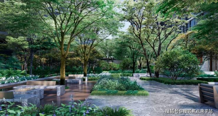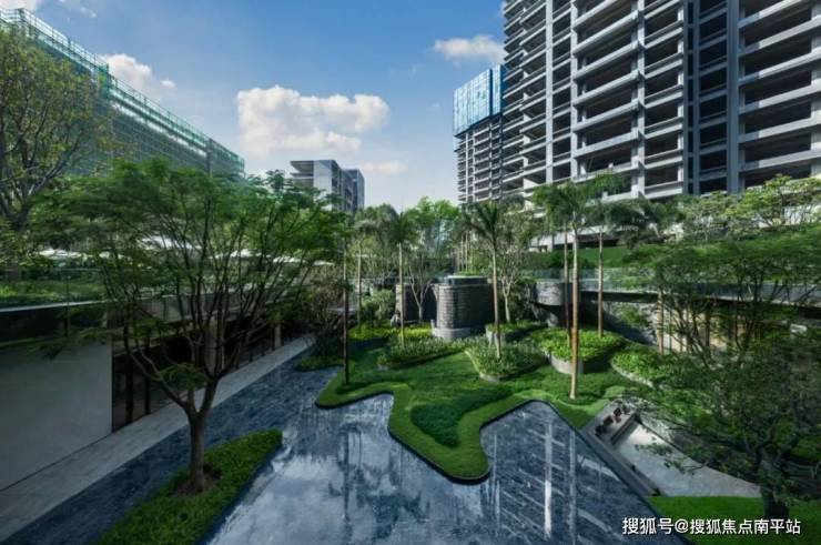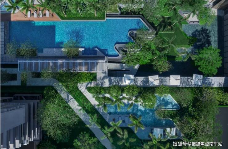湾玺壹号项目景观设计由事务所新加坡JTL Studio倾力打造,以“归心,归林,观山海”为设计理念,同频安缦生活范式,布局“缦厅、缦山、缦岛、缦巷”四大模块,营造一种兼具美学感、体验感的东方热带美学隐奢度假场景。让每一位居者能够切身感受到“舒适、愉悦、放松、简单”的生活方式,寻得真正属于内心的平静感。"入必由之,出必由之",作为空间的第一序曲,超97米宽酒店式入口门庭,将东方瓦檐与星级酒店的迎宾礼序结合。门楼的存在将城市的喧嚣与繁忙隔绝,创造出一种尊贵的归家感受,为居者揭开度假之旅的精彩篇章。景观设计采用线性布局,赋予空间以“山、海”的意境美。柔美的弧线搭配灵动的水景,延绵不绝的流动线条恰如柔美的海岸线。顺应地势高差,自然流动的线条与天然石材在空间内蔓延,让人联想到连绵起伏的山丘,增强水景的流动性与自然观感。植物上臻选造型冬青、罗汉松、古桩鸡蛋花、老桩紫薇、特选凤凰木、高大朴树等植物品种,与高端石材搭配相得益彰。