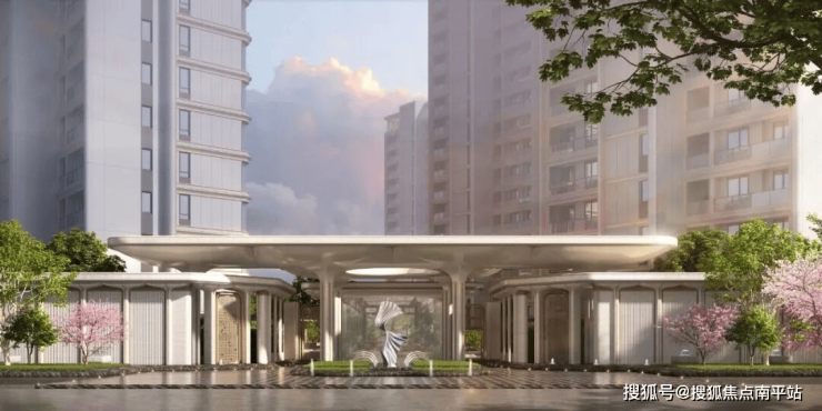 ※ 云栖繁花:近60米长、约7米高的恢宏大门彰显业主尊荣,弧线流畅延展,奢华石材精心点缀,门头采用三重檐“理想之花”设计,层层递进如花瓣绽放,如入繁花流水之境。