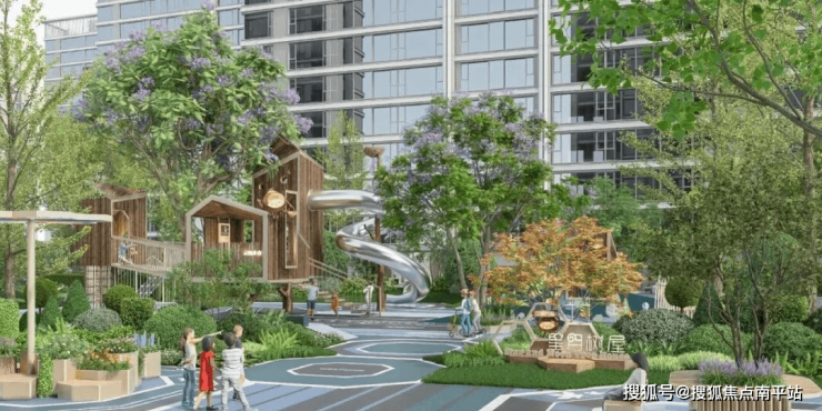 ※ 云耕月作:林荫织翠,自然花园;潺流脉动,趣味器械点缀,构筑鲜明灵动的旱溪秘境。