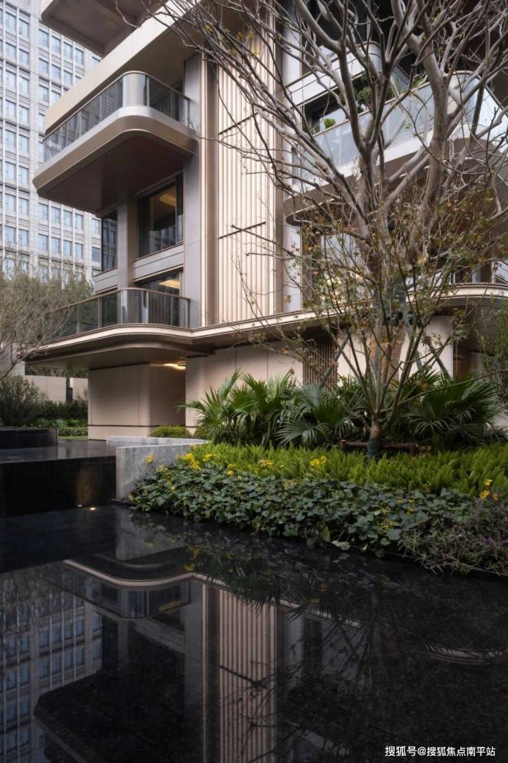 金陵序作为南京首个批复的四代宅,在产品设计上大胆创新。在建筑外观上,公建化立面搭配曲线立面流体美学,大量运用金属铝板、幕墙玻璃以及弧形石材,不仅使建筑极具现代感和艺术感,还拥有极佳的采光与视野效果。整个小区随处可见的圆弧转角设计,虽造价高昂、工艺难度大,但赋予了建筑独特的美感,这种对品质的极致追求令人赞叹。