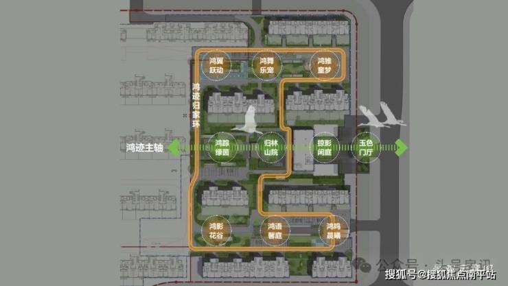 景观设计围绕“循声入林·鸿影纷飞”核心主题,营造整体和谐且各有特点的居住空间。