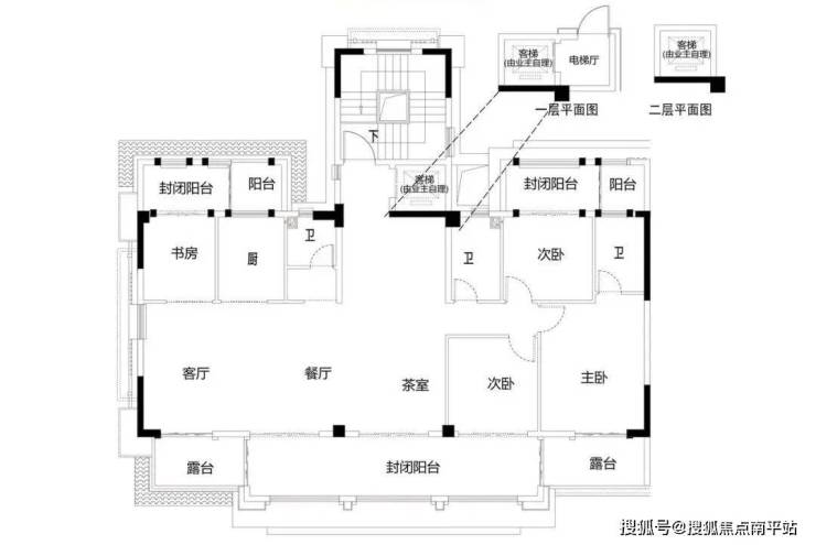 户型二的亮点在于兼顾每一位家庭成员的生活所需,长辈习惯早睡早起,孩子精力充沛,男女主人需要有个独立、私密的空间,只有分层居住、套房设计的“墅”质产品才能做到。该户型一层书房空间可改造为长辈房,早起闲时饭后还可到花园散散步;二层基本每个空间都有阳台,居住舒适性倍增。